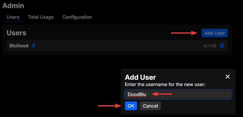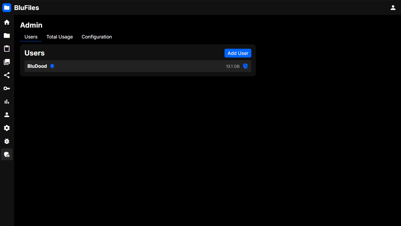 In the "Users" section of the administration page, you can create and manage user accounts on your BluFiles instance.
